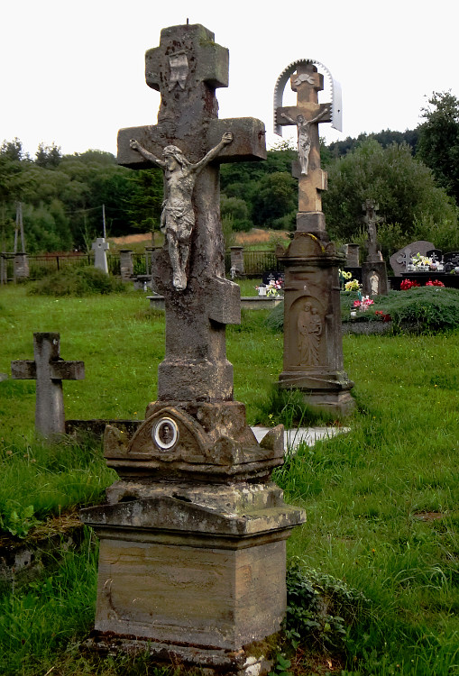 Na miejscowym cmentarzu znajdujemy wiele starych XIX wiecznych pochówków